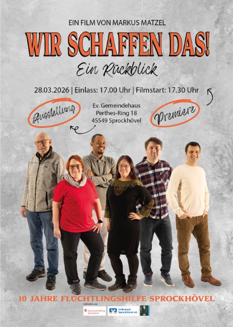„Wir schaffen das! – Ein Rückblick“ ist eine dokumentarische Langzeitproduktion von Markus Matzel über zehn Jahre ehrenamtliche Flüchtlingshilfe in Sprockhövel. Der Film erzählt von Menschen, Begegnungen und dem Engagement vieler Bürgerinnen und Bürger, die seit 2015 Geflüchtete beim Ankommen begleiten und Integration im Alltag möglich machen.