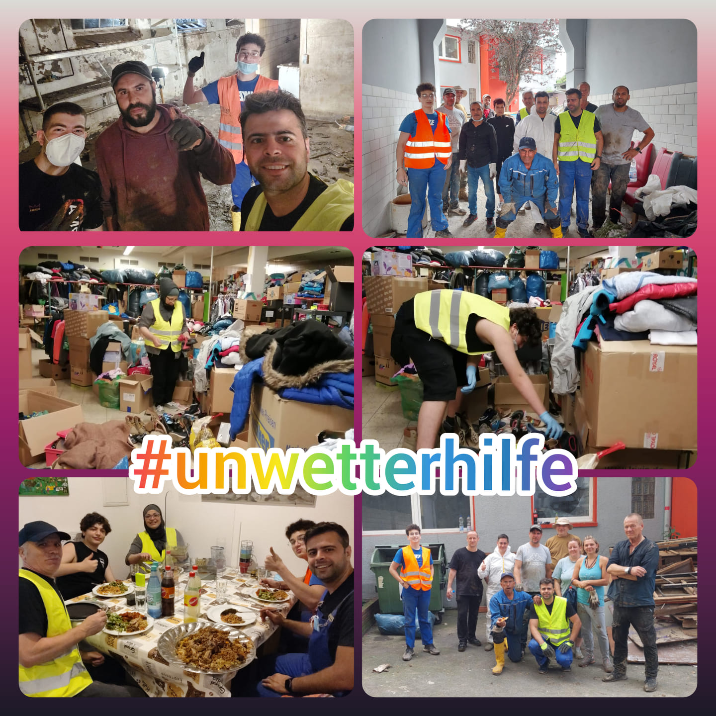 Das Team „Syrische Freiwillige in Deutschland“ hilft mit ehrenamtlichen Einsatzteams in allen deutschen Überschwemmungsgebieten, auch in Sprockhövels Nachbarstadt Hagen. Weil dort nicht genügend Schlafplätze zur Verfügung stehen, ist die Flüchtlingshilfe Sprockhövel eingesprungen und hat zunächst fünf Schlafplätze für die Freiwilligen organisiert. Der Kochtreff der Flüchtlingshilfe kocht jeden Abend für die Gäste, die für ihren Einsatz teilweise sogar Urlaub genommen haben. Die Kleiderkammer sorgt für Arbeitskleidung, außerdem finanziert die Flüchtlingshilfe Tankgutscheine für die Fahrten zwischen Hagen und Sprockhövel.